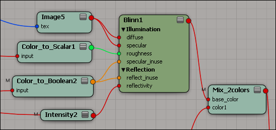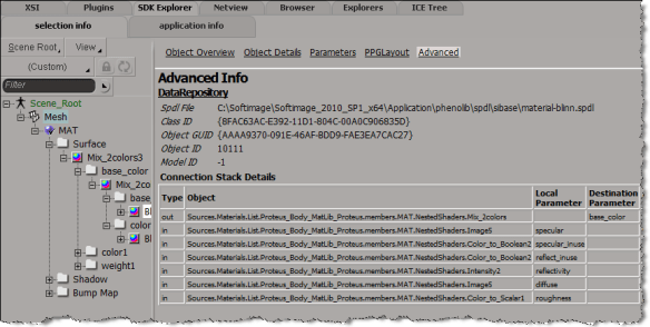 Notice how the Connection Stack Details give you everything you need to replace a Blinn node with some other node in the render tree: