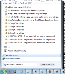 I have extensive Outlook e-mail archives, so the ability to search them all from one place has come in very handy. For example, an xsibase user recently posted about a problem creating submenus in Python. This jogged something in my memory, so I clicked the Windows Start button, typed in “menu AddItem”, and in a few minutes I had tracked down the answer (again).