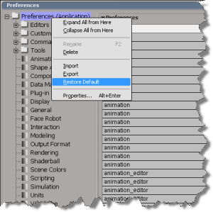 Or, if you suspect that some preference setting is causing Softimage to mis-behave, you can export your current settings before you restore the defaults.