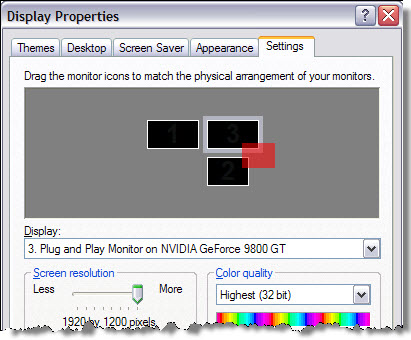 In this case, the customer reported that when he did a viewport capture, the capture area wasn’t in the right place. In this screenshot of his display properties, the red area is where the viewport capture happened: