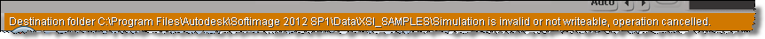 The problem is that Softimage is trying to write a file in the folder Data/XSI_SAMPLES/Simulation, where it doesn’t have write permissions.