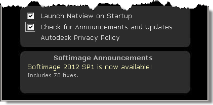 In Softimage NetView, turn on Check for Announcements and Updates: