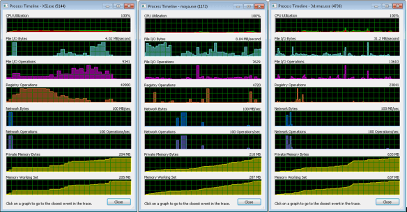 The other day I was using Process Monitor to see where Softimage spent its time during startup, and I was curious to see how Softimage compared to the big two. So, here’s some numbers.