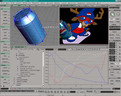 “In the beginning, using traditional animation for commercial purposes had some definite drawbacks,” Buying remembers. “Perhaps the biggest problem was establishing some sort of believable interaction between animated characters and the live-action product you were trying to sell. When SOFTIMAGE|3D was initially introduced to us, we saw that we could model, stage, light and animate products in a way that was completely unthinkable in a traditional environment. Keeping the dialectics of progress in mind, we came to a quick conclusion: ComicHouse had to invest in the best talent and state-of-the-art technology. As a result, our animation production process has changed dramatically in order to adapt both to new developments in the industry and to the heightened expectations of our clients. Working with Toonz and SOFTIMAGE|XSI, ComicHouse is better prepared than ever to compete with the world’s best-equipped studios. Both systems allow a company like ours to cut back on production time and budgets, keeping us competitive with similar European and Asian studios.”