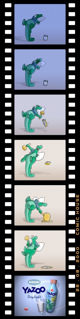 To create a Yazoo for the next generation, ComicHouse used their substantial contacts to create a team of international animation talent. Top animators from the Netherlands, Great Britain and Canada all came to the ComicHouse studios in Amsterdam, where they worked on some fourteen Yazoo commercials.