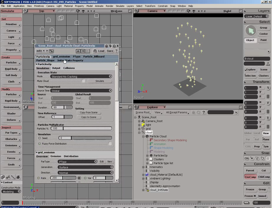 The initial goal of project MoonDust was to develop a new particle simulation system for XSI. The existing particle system, which had been in XSI since v1.0, had reached its limits. It was a monolithic system that wasn’t flexible or customizable enough (eg available events and attributes hard coded into the system).