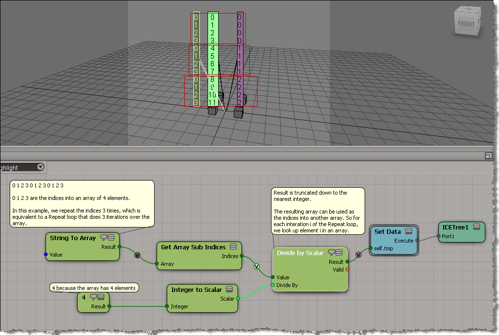 If that ICE tree is hard to follow, then it may help to use some attributes to store intermediate values(arrays). That way you can separate out some branches of the tree: