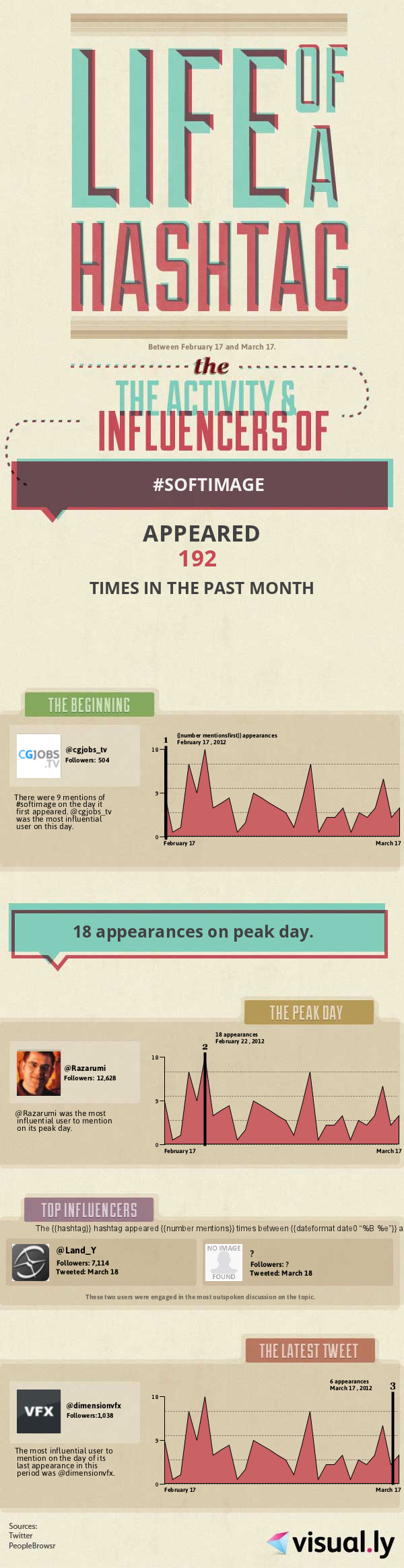 Monday morning diversion while the brain fog clears…a “life of a hashtag” infographic generated with visual.ly for #softimage.