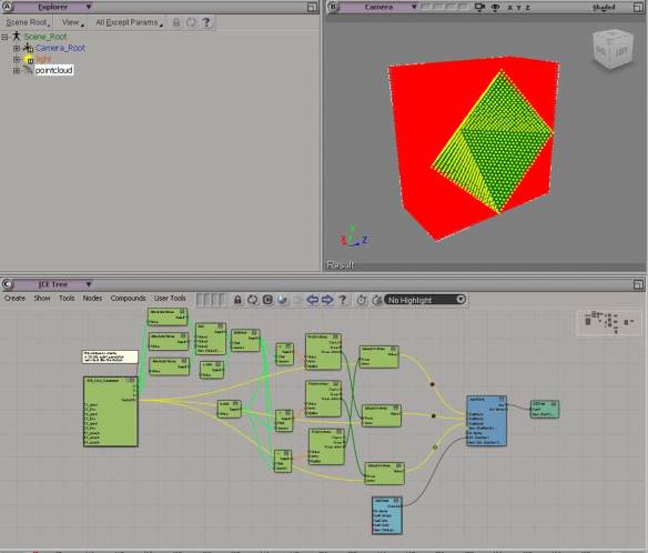 “you can use attributes from the actor_copies mesh to do per vertex or per polygon shading. use CopyIndex and CopyIndex_PerPolygon attributes and in combination with MaterialID attribute to target certain ‘cluster’ you can source this attribute in the render tree using the attribute shaders…”