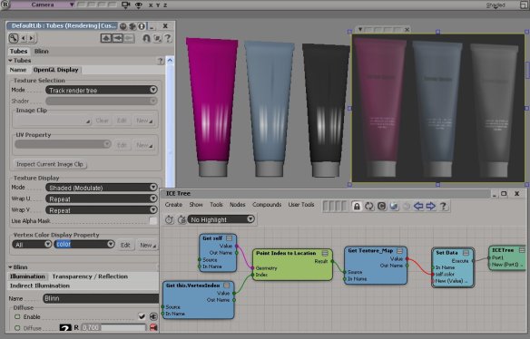 Trick to write the texture map in a color at vertice map with ice, and read it with a realtime shader