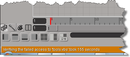 Warning? Verifying failed access? Posted on June 25, 2012 by xsisupport I’ve never seen this one before: “Verifying the failed access to ‘tools.vbs’ took 155 seconds.” 155 seconds? It seemed like forever… Share this: Click to share on Facebook (Opens in new window) Facebook Click to share on X (Opens in new window) X Like Loading... Related