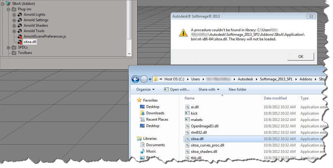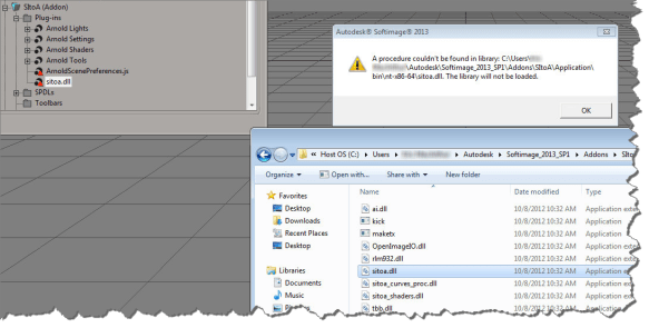 A procedure couldn’t be found in library Addons\SItoA\Application\bin\nt-x86-64\sitoa.dll. The library will not be loaded.