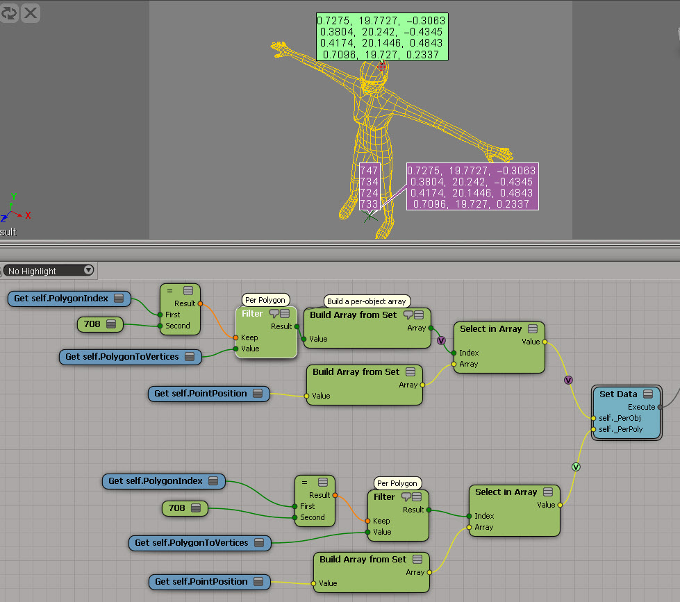 Get from PolygonIndex to PointPosition with PolygonToVertices Posted on February 25, 2013 by xsisupport Here’s one way to take a PolygonIndex and get the corresponding point positions. I’m sure I’ve showed this in other ICE trees, but I always forget, so I’m posting this so I’ll be able to find it next time I want it 🙂 Share this: Click to share on Facebook (Opens in new window) Facebook Click to share on X (Opens in new window) X Like Loading... Related