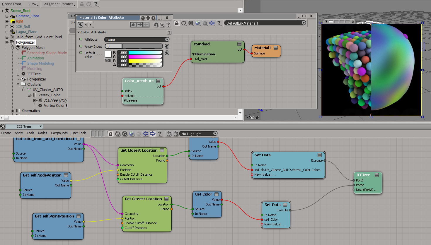 1. On the polygonizer mesh, create an ICE Tree.