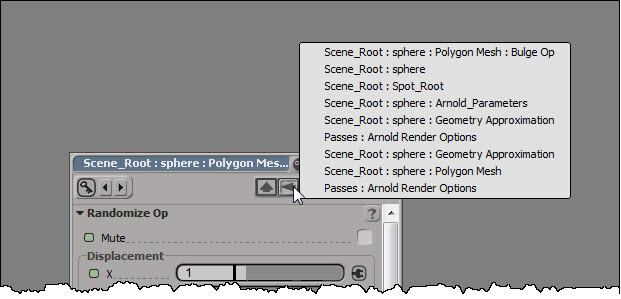 If you right-click one of those arrows, you can see the history list of inspected nodes, and select a specific node to inspect: