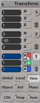 Tip: Entering the same value in multiple boxes of the Transform Panel Posted on August 13, 2013 by xsisupport Shift+Right Click the axes icons in the Transform Panel to select the values you want to set. The backgrounds of the number boxes will turn blue. Enter a value in any one of the boxes, and press ENTER. Share this: Click to share on Facebook (Opens in new window) Facebook Click to share on X (Opens in new window) X Like Loading... Related