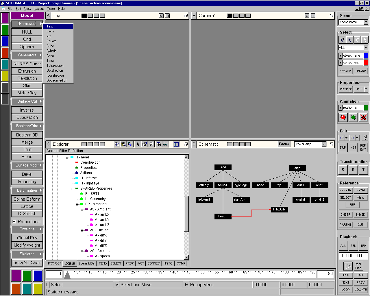 As discussed, this is a visual basic mockup for Sumatra, aka XSI. In the Explorer, “Scene MO” means Scene Media Object. In the early Sumatra design, everything was called a Media Object, which came from the Digital Studio architecture underneath. Eventually we didn’t use any of that MO architecture and built our own operator architecture instead, internally called ActiveData.