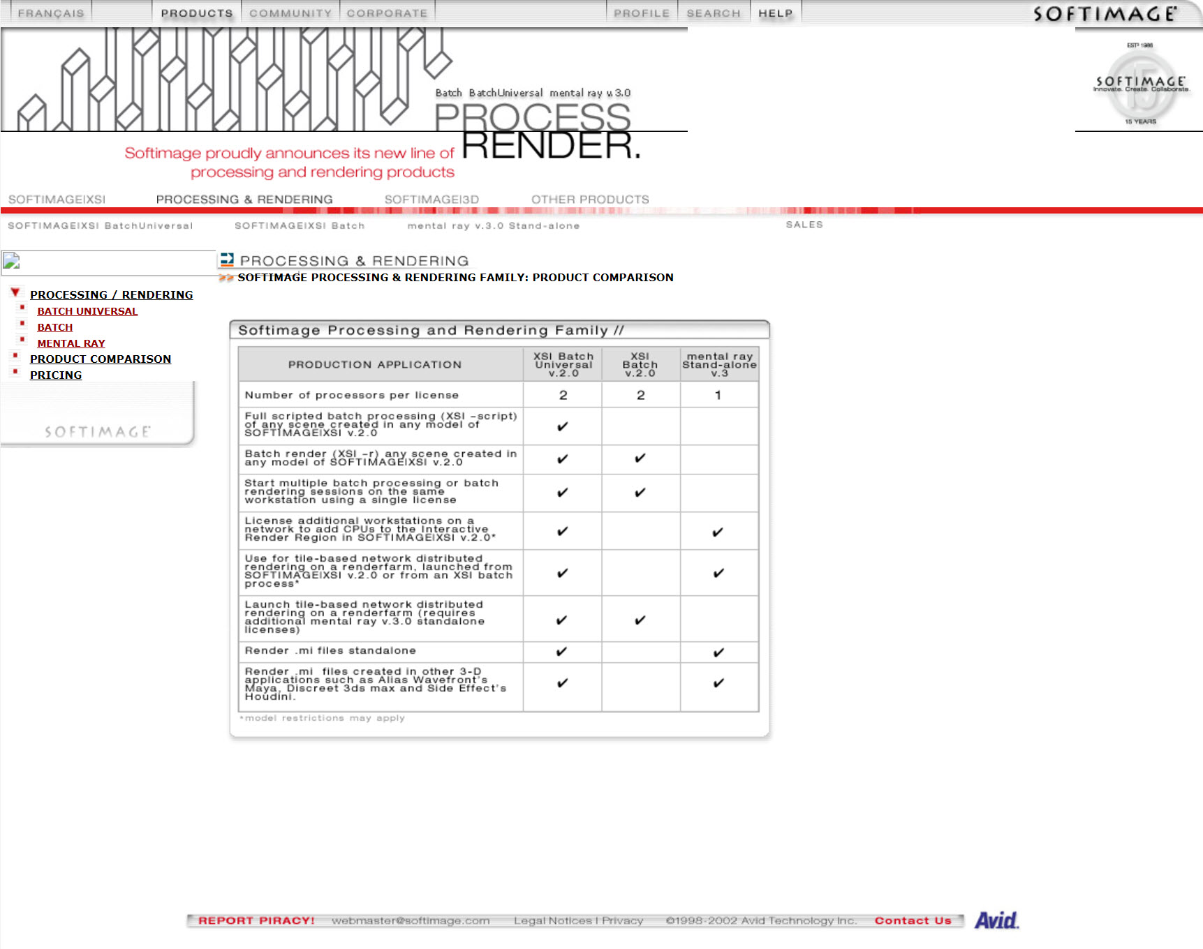 SOFTIMAGE|3D is Softimage’s legendary 3-D character animation product for the film, commercial/broadcast and games development markets. SOFTIMAGE|3D v.4.0 features robust, production-proven organic modeling, legendary character animation tools and high-quality photorealistic rendering – providing a perfect first step into the world of 3-D production. Version 4.0 offers a range of new features with an emphasis on game authoring, including multiple UV texturing, vertex color authoring and polygon hide/unhide tools. SOFTIMAGE|3D also offers an easy upgrade path to the next-generation SOFTIMAGE|XSI nonlinear animation (NLA) system.