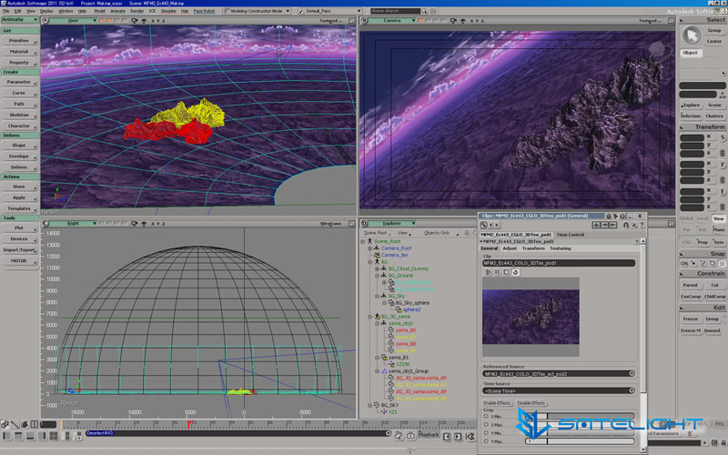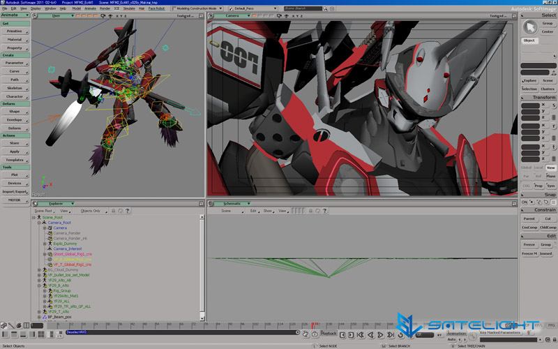 The completed model data will be exported to Softimage and Maya and used in the shots in charge of each team. Valkyrie appearing in the work has data for Softimage, Maya, 3ds Max even if it is the same aircraft. Video production is carried out using Autodesk products that each person in charge is good at. Depending on the cut, camera work created in Softimage was imported into Maya in FBX format for work, and layouts and animations created in Maya were imported into 3ds Max.