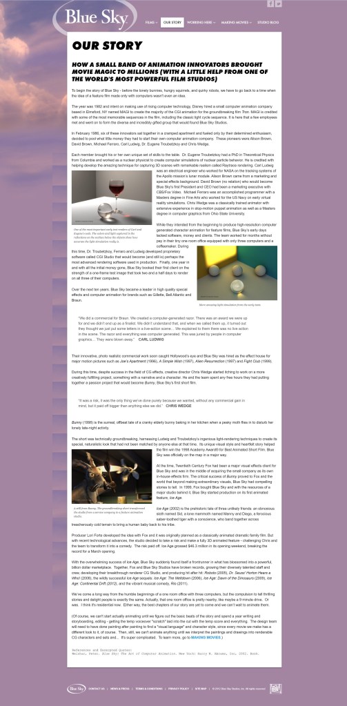 Friday Flashback #590 Posted on June 20, 2025 by xsisupport Reply Following up on the previous post about the Blue Sky Studio Bunny, here’s the Blue Sky “Our Story”, retrieved from way back in 2012…