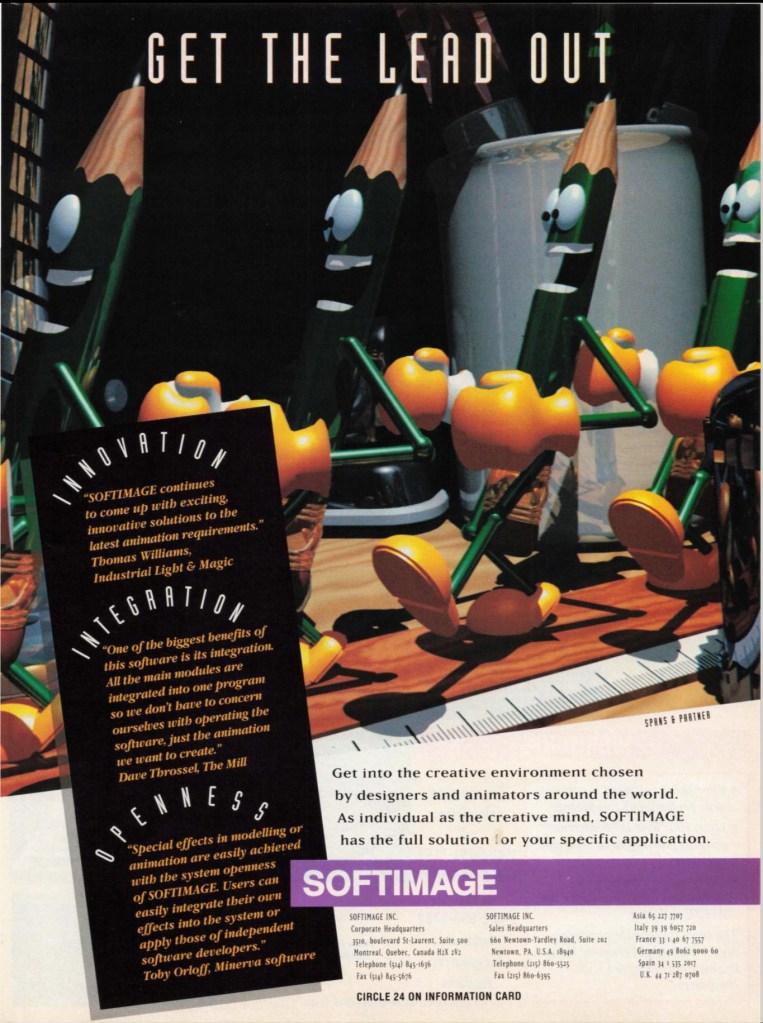 Friday Flashback #609 Posted on January 16, 2026 by xsisupport Get the Lead OutComputer Graphics World, April 1993 Share this: Share on Facebook (Opens in new window) Facebook Share on X (Opens in new window) X Like Loading... Related
