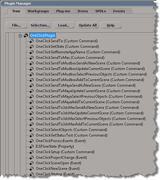 OneClick plugins take care of the Send To commands. In Softimage, you can use the Plug-in Manager to check out the OneClick plugin (it’s under the Factory location):