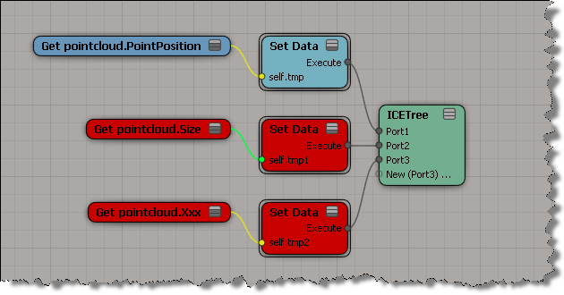 Consider this ICE tree on my empty point cloud. The Size attribute is just like my own custom Xxx attribute, whereas the built-in PointPosition attribute resolves nicely.