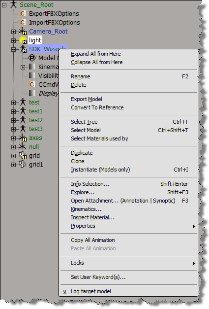 If your menu is attached to a contextual menu, the currently selected objects are passed in to your callback. The target object under the cursor is also passed in as part of the selected objects. However if no objects are selected, then only the target is passed in. The objects can be retrieved through the Context.GetAttribute method with “Target” specified as the value for the AttributeName parameter. The selected/target objects are not passed in to the callback of a custom menu item attached to a regular menu.