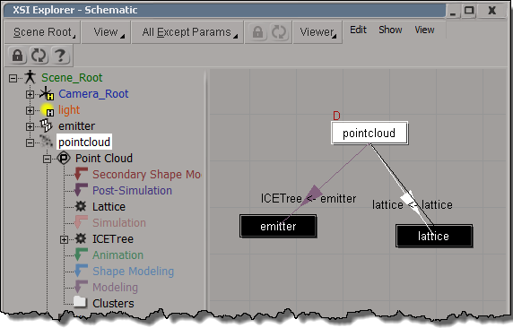 Here’s a handy way to navigate through a scene and show the selected object and its connections in the Schematic: use the XSI Explorer with Viewer set to Schematic.