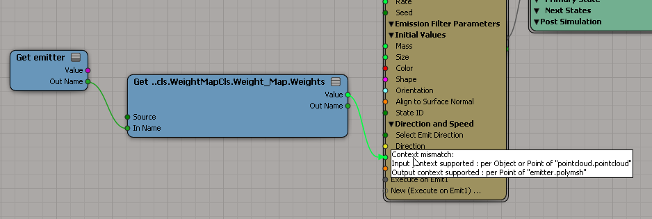 Instead, you use get a location, like the particle emit location, and then get the weightmap value at that location. Then you’ll have a particle per-point context to work with.